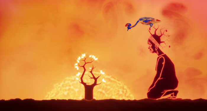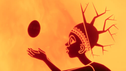 Une femme traverse le temps et la mémoire, des savanes au cosmos, en quête d’un œuf mystérieux qui lui révélera son avenir. Au fil du parcours, elle puise sa force du sang des anciens coulant dans ses veines. Ce court métrage d’animation propose une allégorie sur la résilience qui défie les millénaires.