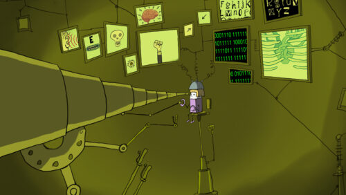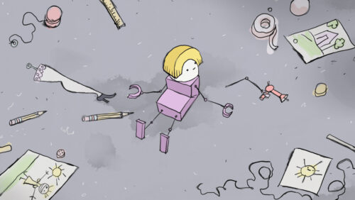 Une fillette s’amuse avec ses jouets en toute insouciance, ignorant qu’elle tient peut-être l’avenir de l’humanité entre ses mains. En trame de fond, les voix de spécialistes en technologie mêlent innocence, espoir et légère panique à propos de l’intelligence artificielle. Ce récit fantaisiste qui invite néanmoins à la prudence soulève des questions : qui contrôle l’IA ? À qui profite-t-elle ? Qui attend toujours le mode d’emploi ? Réalisé par Cordell Barker, nommé à deux reprises aux Oscars, Bonne chance à vous tous capte le mélange d’amusement, d’anxiété et de malaise que nous inspirent nos « amis » les robots… qui domineront peut-être un jour le monde.