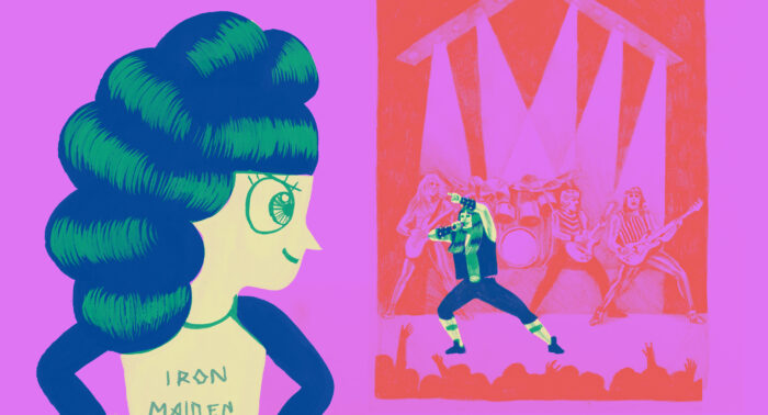 J’ai beaucoup écouté la musique d’Iron Maiden quand j’étais jeune. Plusieurs années plus tard, j’ai vu un documentaire dans lequel il parlait de son désir, quand il fait un spectacle dans un grand stade, que chaque personne se sente vraiment interpellée quand il crie « You! ». Il est impressionnant, un vrai performer! Ça m’est resté dans la tête : au-delà de mon amour pour sa musique, je trouve qu’il a un côté superhéros. Ma productrice, Christine Noël, et moi avons essayé fort de le joindre pour qu’il collabore au film, et on n’en revenait pas qu’il accepte! C’est certain que la perspective de travailler avec lui m’intimidait un peu, mais je l’ai trouvé vraiment sympathique, accessible et totalement disposé à participer. En plus, il parle français! Ça s’est vraiment bien passé.