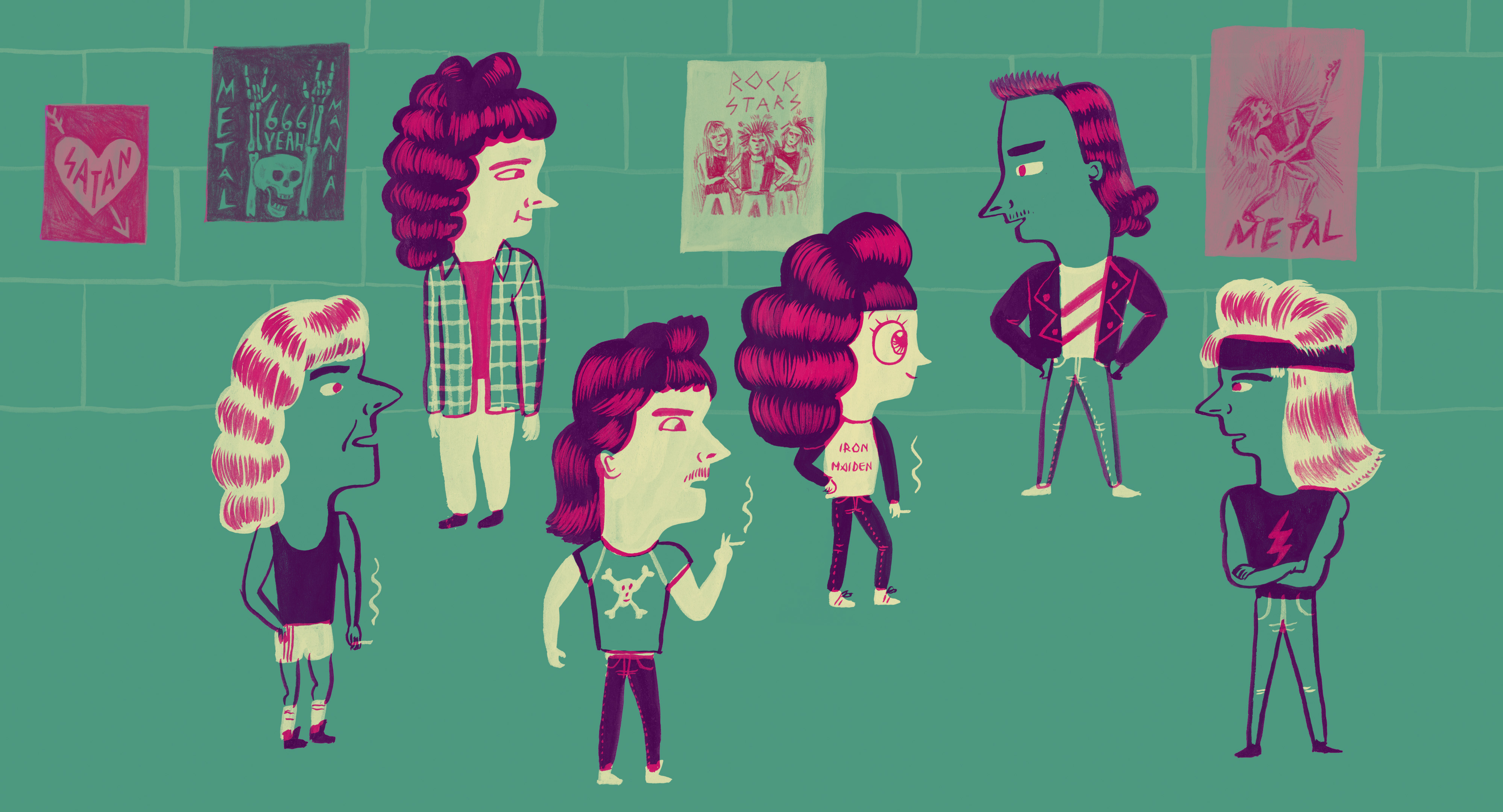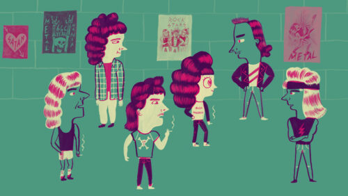 Au lieu de faire une adaptation directe de ces livres, je me suis lancé le défi de les réinventer. Premièrement, j’ai décidé d’introduire plusieurs univers dans le film, comme la bouffe, les petits chats, etc., pour qu’Ultra forte soit rythmé et varié graphiquement. Dans mon premier film, j’avais adoré mélanger différentes techniques, passer d’un style d’animation à l’autre, avec de courts tableaux. Bref, en faisant mon deuxième, je me suis vraiment fait plaisir, pour être sûre de ne pas passer deux ans à dessiner le même personnage! [rires] Par exemple, les éléments imaginés, comme Bruce Dickinson, sont dessinés de façon plus réaliste et nuancée que les éléments réels. Je l’ai justifié comme ceci, après avoir eu l’élan de le faire : nos idéaux sont plus beaux, plus parfaits que la réalité.